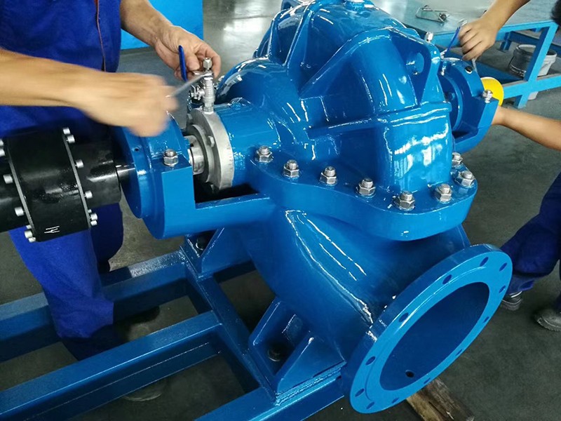 5、中開泵的泵軸由兩套滾動軸承支撐,安裝在泵體兩端。軸承體設計使軸承可采用油脂或稀油潤滑,軸承的設計壽命10萬小時以上,也可使用雙列推力軸承和封閉軸承。泵體上設有雙吸密封環,拆卸更換方便。S(SH)型中開泵通過彈性柱銷聯軸器或金屬迭片式聯軸器由電動機直接傳動。驅動機也可采用內燃機、氣輪機。